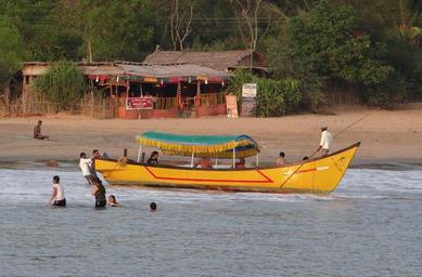 Keywords: sea arabian boat boating beach ocean water frolickers coast tourism gokarna india