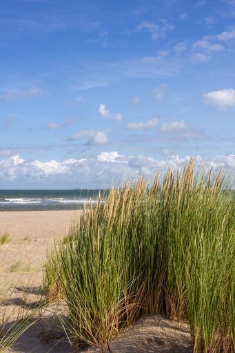 Keywords: sea beach dunes sand water clouds sky surf coast north sea grass dune grass zeeland sand beach