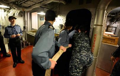Keywords: Sea cadet training 150317-N-PX557-217.jpg en 150317-N-PX557-217 FALL RIVER Mass March 17 2015 Chief Navy Counselor Ann Ferguson assigned to U S Naval War College NWC in Newport Rhode Island provides firefighting training to sea cadets assigned to Defiant 338 Royal Canadian Sea Cadet Corps from Kemptville Ontario in damage control central of the South Dakota-class battleship USS Massachusetts BB-59 in Fall River Mass Chief petty officers from NWC met the visiting cadets onboard Massachusetts and provided Navy familiarization seamanship and firefighting training U S Navy photo by Chief Mass Communication Specialist James E Foehl/Released 2015-03-17 Chief Petty Officer James Foehl https //www dvidshub net/image/1827678 150317-N-PX557-217 2015-03-21 05 32 FALL RIVER MA US PD-USGov-Military-Navy Firefighting training Images from DoD uploaded by Fæ |