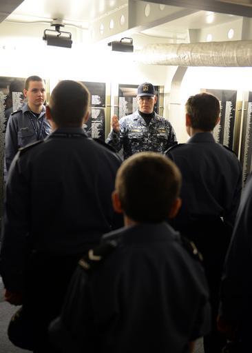Keywords: Sea cadet training 150317-N-PX557-080.jpg en 150317-N-PX557-080 FALL RIVER Mass March 17 2015 Chief Yeoman Craig Flowers assigned to U S Naval War College NWC in Newport Rhode Island speaks with sea cadets assigned to Defiant 338 Royal Canadian Sea Cadet Corp from Kemptville Ontario onboard the South Dakota-class battleship USS Massachusetts BB-59 in Fall River Mass Chief petty officers from NWC met the visiting cadets onboard Massachusetts and provided Navy familiarization seamanship and firefighting training U S Navy photo by Chief Mass Communication Specialist James E Foehl/Released 2015-03-17 Chief Petty Officer James Foehl https //www dvidshub net/image/1827683 150317-N-PX557-080 2015-03-21 05 32 FALL RIVER MA US PD-USGov-Military-Navy Firefighting training Images from DoD uploaded by Fæ |