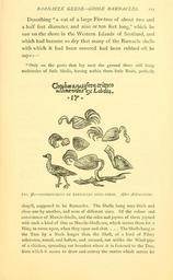 Keywords: Sea fables explained (15563906286).jpg BARNACLE GEESE GOOSE BARNACLES iii <br> Describing a cut of a large Firr-tree of about two and <br> a half feet diameter and nine or ten feet long which he <br> saw on the shore in the Western Islands of Scotland and <br> which had become so dry that many of the Barnacle shells <br> with which it had been covered had been rubbed off he <br> says - <br> Only on the parts that lay next the ground there still hung <br> multitudes of little Shells having within them little Birds perfectly <br> FIG 36 DEVELOPMENT OF BARNACLES INTO GEESE After Aldrovandus <br> shap'd supposed to be Barnacles The Shells hung very thick and <br> close one by another and were of different sizes Of the colour and <br> consistence of Muscle-Shells and the sides and joynts of them joyned <br> with such a kind of film as Muscle-Shells are which serves them for a <br> Hing to move upon when they open and shut The Shells hang at <br> the Tree by a Neck longer than the Shell of a kind of Filmy <br> substance round and hollow and creased not unlike the Wind-pipe <br> of a chicken spreading out broadest where it is fastened to the Tree <br> from which it seems to draw and convey the matter which serves for 10985717 41337 10456 Page 111 Text http //www biodiversitylibrary org/page/10985717 1883 10 5962/bhl title 10456 International Fisheries Exhibition; Lee Henry NameFound Aldrovandus NameFound Barnacles NameConfirmed Barnacles NameBankID 5033555 Biodiversity Heritage Library Sea fables explained Folklore Ocean Smithsonian Libraries bhl page 10985717 dc identifier http //biodiversitylibrary org/page/10985717 bhlMonstersRreal Halloween smithsonian libraries bhlmonstersrreal halloween Information field Flickr posted date ISOdate 2014-10-21 CC-BY-2 0 BioDivLibrary https //flickr com/photos/61021753 N02/15563906286 2015-08-25 16 59 27 cc-by-2 0 PD-old-70-1923 Sea fables explained Photos uploaded from Flickr by FĂŚ using a script |