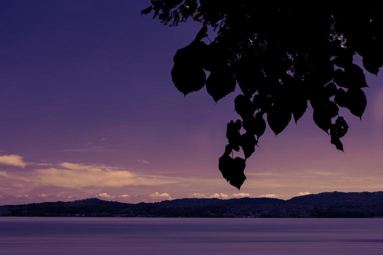 Keywords: sea lake water sunset leaves violet sky water lakes nature landscape