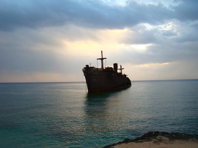 Keywords: sea ocean water ship silhouette sky clouds spring summer reflections sunset