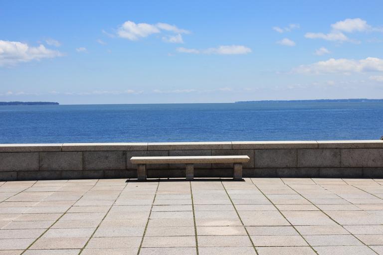 Keywords: sea sea view bench vista view horizon peace peaceful calm quiet endless blue water