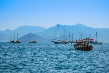 Keywords: sea ships sailboats sail mountains the coast ship blue ocean transport