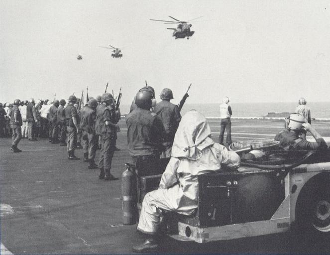 Keywords: Sea Stallions approach USS Midway.jpg en Sea Stallions approach USS Midway during Operation Frequent Wind 29 April 1975 U S Navy photo http //www navysite de/cruisebooks/cv41-76/227 htm from the http //www navysite de/cruisebooks/cv41-76/index_018 htm USS Midway CV-41 1975-76 cruise book available at http //navysite de/cruisebooks/index html Navysite de USN 1975-04-29 Operation Frequent Wind Aboard USS Midway CV-41 PD-USGov-Military-Navy |