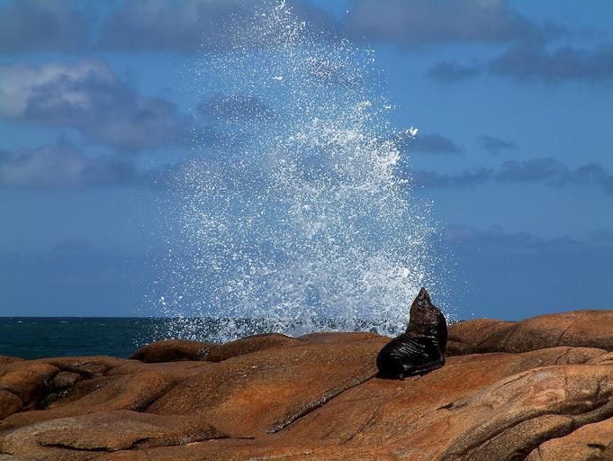 Keywords: sea wolf sea splash waves stones nature horizon rest rocks landscape beach costa water sky uruguay background image