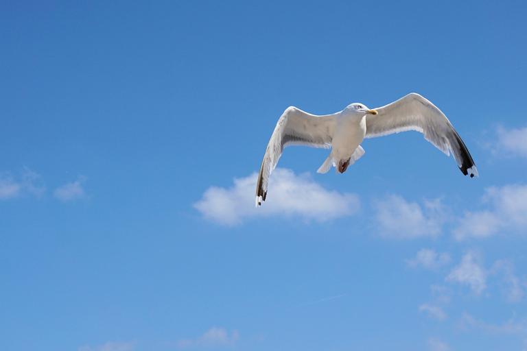 Keywords: seagull baltic sea fly seevogel flight bird water bird nature sea lake bird of prey bill plumage feather white sky blue clouds blue sky sky blue