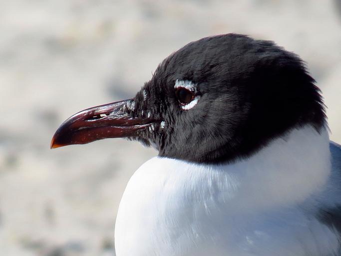 Keywords: seagull bird beak black haed colse up portrait animal fauna beach