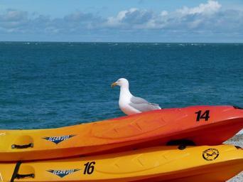 Keywords: seagull bird fowl sky clouds scenic sea ocean water boats kayaks canoes nature outside macro close-up