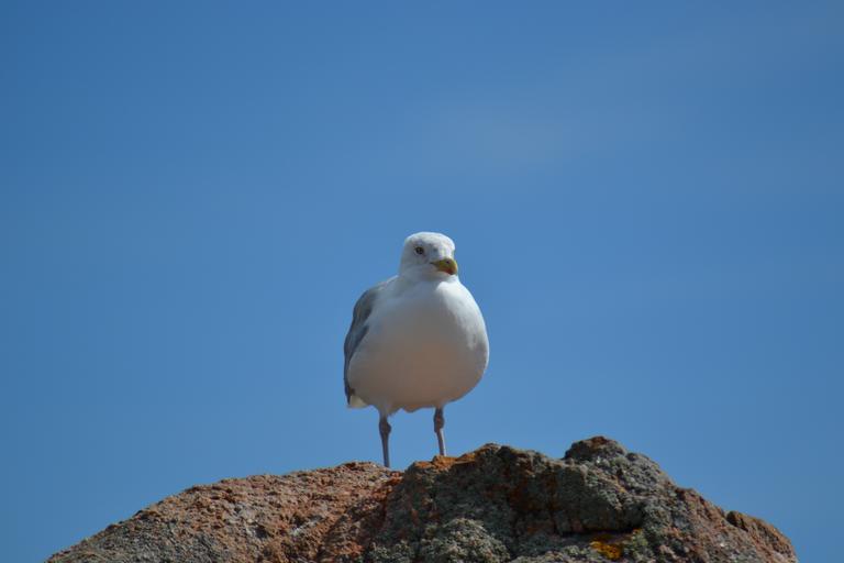 Keywords: seagull european herring gull larus argentatus bird sea bird blue sky rock seaside day time summer