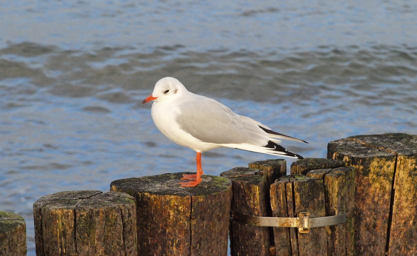 Keywords: seagull water bird plumage coast baltic sea sit groynes