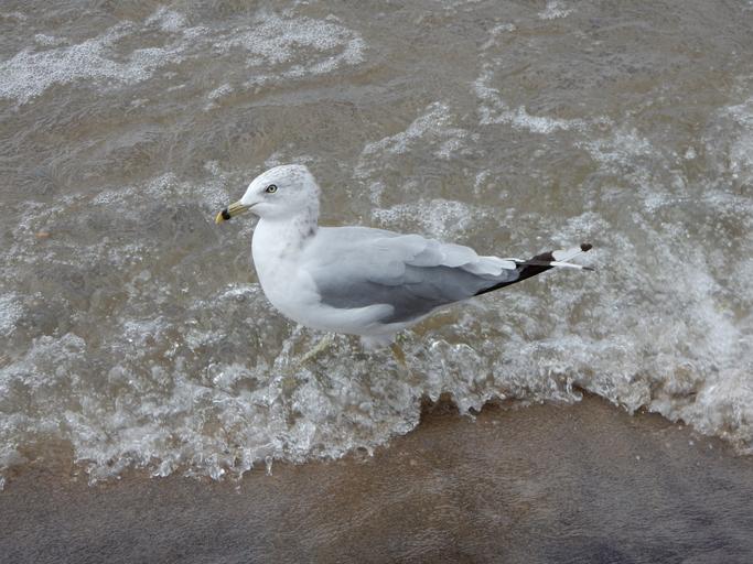 Keywords: seagull wave profile sea beach water nature bird animal wildlife summer coastline gull feather sand shore surf