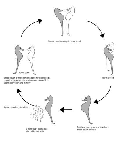 Keywords: Seahorse lifecycle.svg Schematic illustration of life cycle of seahorse based on - Look Katrien J W Van; Dzyuba Borys; Cliffe Alex; Koldewey Heather J ; Holt William V 2007-02-01 Dimorphic sperm and the unlikely route to fertilisation in the yellow seahorse Journal of Experimental Biology 210 3 432 “437 own 2015 Shyamal Hippocampus anatomy Cc-zero |