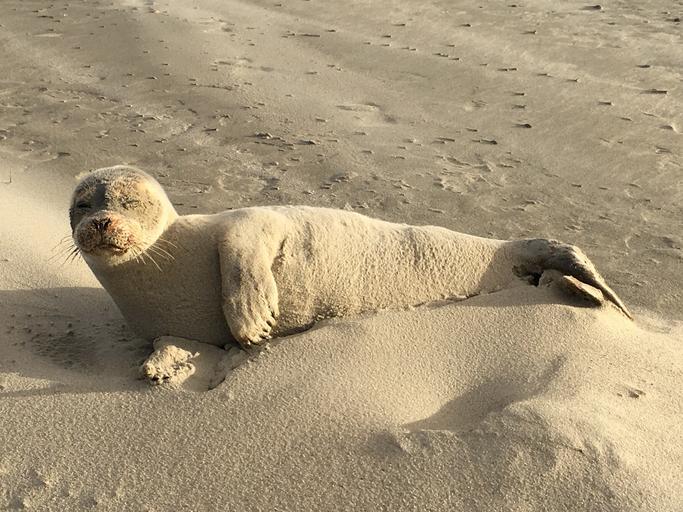 Keywords: seal sand mammal beach sea water creature nature water creature marine mammals animal sweet young norderney seerobbe meeresbewohner rest concerns