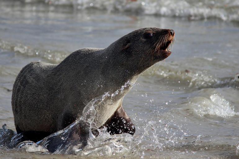 Keywords: seal sea beach water sand ocean attack defense roar atlantic coast