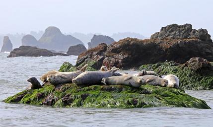 Keywords: seals resting rock ocean wildlife water mammal animal nature aquatic marine cute