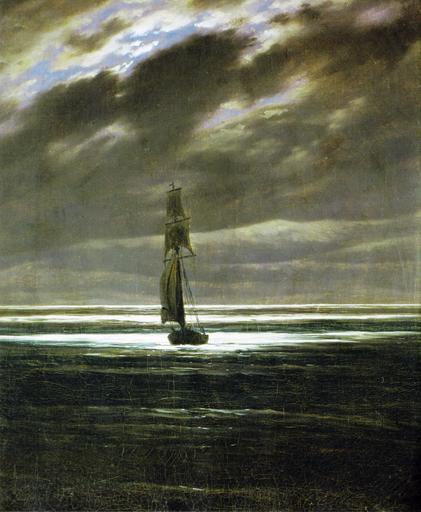 | Keywords: Seapiece by Moonlight.jpg Artwork Creator Caspar David Friedrich title Seestück bei Mondschein Seascape by Moonlight also known as Seapiece by Moonlight Morze w świetle księżyca о ской пейзаж в лунном свете Marin au clair de lune detail 1827/28 Oil on canvas cm 25 2 31 2 Museum der Bildenden Künste Leipzig accession number 1732 http //www sternburg-stiftung de/gemaelde/popup_43 html sternburg-stiftung de object history This painting has been bought from Friedrich by Maximilian Speck von Sternburg 1776 1856 <ref> 1989 Bulletin of the John Rylands University Library of Manchester Volume 71 ed Manchester United Kingdom John Rylands University Library of Manchester S p 18 </ref> reflist Lewis J Patrick 2006 At Teach's Hole in Blackbeard The Pirate King Washington D C United States National Geographic ISBN 0-7922-5585-2 Other versions <gallery> File See in the moonlight by Caspar David Friedrich jpg </gallery> PD-old-100-1923 DEFAULTSORT Caspar David Friedrich Seestück bei Mondschein 1820s paintings by Caspar David Friedrich 1827-28 Seestück bei Mondschein Paintings in the Museum der bildenden Künste Details of paintings by Caspar David Friedrich Night in seascape paintings 19th-century sailing ships in paintings 19th-century oil on canvas paintings Taken with Canon PowerShot SX210 IS Collection Maximilian Speck von Sternburg |