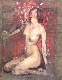 Keywords: Seated nude with her head thrown back by Sarah Purser 1923.png Oil on canvas painting titled Seated nude with her head thrown back created in 1923 with Kathleen Kearney as model Catalogued under the number 520 1923 self-scanned John O'Grady The Life and Work of Sarah Purser Four Courts Press Dublin 1996 ISBN 1-85182-241-0 plate 57 Creator Sarah Purser PD-old-auto 1943 Sarah Purser |