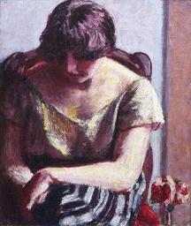 Keywords: Seated Woman with Roses o'Conor.jpg en Seated Woman with Roses s 1920 http //www adams ie/49175/Roderic-O-Conor-RHA-1860-1940-Seated-Woman-with-Roses-Oil-on-canvas-55-x-46cm-21¾-x-18-Painted-circa-1923-5-O-Conor-painted-another-similar-work-but-without-the-roses-on-the-table-See-Benington ipp All keyword view lot_detail Creator Roderic O'Conor PD-Old-70 Uploaded with UploadWizard Roderic O'Conor |