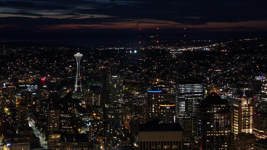 Keywords: seattle aerial view panorama night mood sea of light homes city night night photograph usa