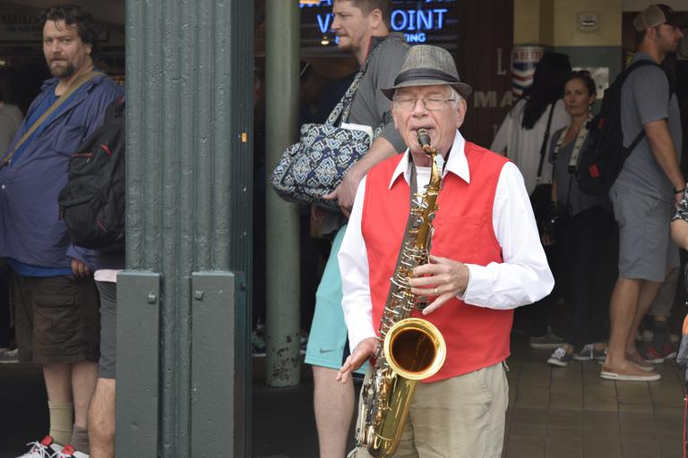 Keywords: seattle pikes place market street performer jazz old man pike place market landmark northwest