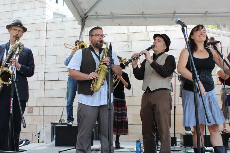 | Keywords: orkestar zirkonium seattle city council seattlecitycouncil seattle office arts culture presents Orkestar Zirkonium is a thirteen-member brass-and-drum ensemble that borrows from a variety of musical traditions, composes original music, and kicks out celebratory spectacle in a variety of circumstances. Here they are playing City Hall Plaza in the Seattle Presents Concert Series. Orkestar Zirkonium is a thirteen-member brass-and-drum ensemble that borrows from a variety of musical traditions, composes original music, and kicks out celebratory spectacle in a variety of circumstances. Here they are playing City Hall Plaza in the Seattle Presents Concert Series. |