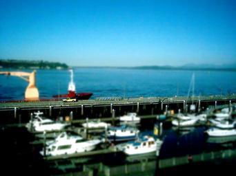Keywords: tilt shift tiltshift seattle water waterfront landscape seaside shore outdoor boat vehicle Another attempt at fake tilt shifting. Alaskan Way, Seattle. Another attempt at fake tilt shifting. Alaskan Way, Seattle.