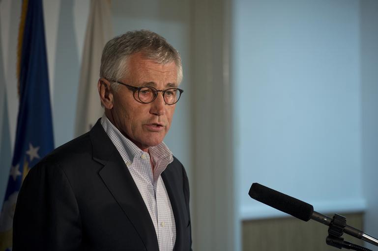 Keywords: SecDef visits Iraq 141209-D-DT527-511.jpg en Secretary of Defense Chuck Hagel speaks with members of the media at Baghdad International Airport Iraq during a visit there Dec 9 2014 Photo by Master Sgt Adrian Cadiz Released 2014-12-09 Master Sgt Adrian Cadiz https //www dvidshub net/image/1692598 141209-D-DT527-511 2014-12-09 16 12 BAGHDAD IQ PD-USGov Chuck Hagel Images from DoD uploaded by Fæ |
