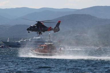 Keywords: Secours en mer IMG 0361.jpg fr Secours en mer own User Raymond26 2010-08-25 Cc-zero Eurocopter Dauphin of the French Navy Helihoisting of people Downwash below helicopters