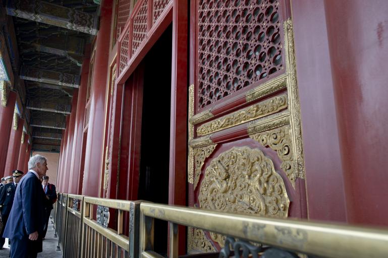 | Keywords: Secretary of defense trip to Beijing 140409-D-BW835-662.jpg en U S Secretary of Defense Chuck Hagel tours the Forbidden City in Beijing April 9 2014 Hagel spent the day meeting with Chinese state officials and visited the city on a cultural tour engagement Unit Defense Imagery Management Operations Center DVIDS Tags Soldier; DoD; DIMOC; Chuck Hagel; DVIDS Bulk Import 2014-04-09 DOD photo by Erin A Kirk-Cuomo/Released https //www dvidshub net/image/1240000/secretary-defense-trip-beijing 140409-D-BW835-662 2014-04-11 13 34 BEIJING CN PD-USGov Chuck Hagel Images from DoD uploaded by Fæ |