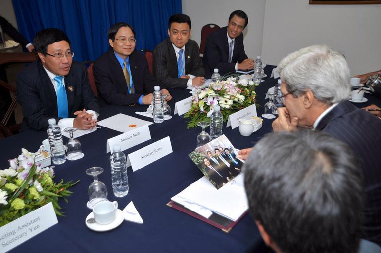 | Keywords: Secretary Kerry Admires Gift From Vietnamese Foreign Minister.jpg en U S Secretary of State John Kerry looks at a photo of himself and the future Foreign Minister of Vietnam Pham Binh Minh after Minh presented him with a picture of the two taken over 20 years ago at Tufts University in Massachusetts They were reunited for a bilateral meeting between their countries in Bandar Seri Begawa Brunei on July 2 2013 State Department photo 2013-07-02 15 39 34 http //www flickr com/photos/statephotos/9189118599/sizes/o/in/photostream/ U S Department of State U S Department of State http //flickr com/photos/9364837 N06/9189118599 2013-07-02 10 51 46 United States Government Work PD-USGov Uploaded with UploadWizard John Kerry in 2013 John Kerry and Phạm Bình Minh 2013 in Brunei Bandar Seri Begawan Photographs taken on 2013-07-02 July 2013 in Asia Bottled water Men with glasses Men wearing neckties Six men Blue neckties Relations of the United States and Vietnam |
