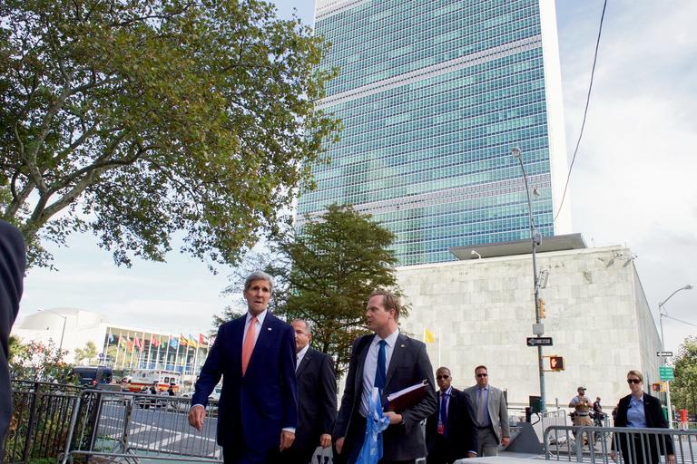 | Keywords: united nations unitednations unga un united nations headquarters new york unitednationsheadquartersnewyork unga 2015 unga2015 outdoor U.S. Secretary of State John Kerry chats with State Department Senior Aide Jason Meininger as they walk between events at the United Nations Headquarters and Ford Foundation offices in New York, N.Y., on September 27, 2015. [State Department photo/ Public Domain] See also: President Obama addresses the United Nations General Assembly. U.S. Secretary of State John Kerry chats with State Department Senior Aide Jason Meininger as they walk between events at the United Nations Headquarters and Ford Foundation offices in New York, N.Y., on September 27, 2015. [State Department photo/ Public Domain] See also: President Obama addresses the United Nations General Assembly. |