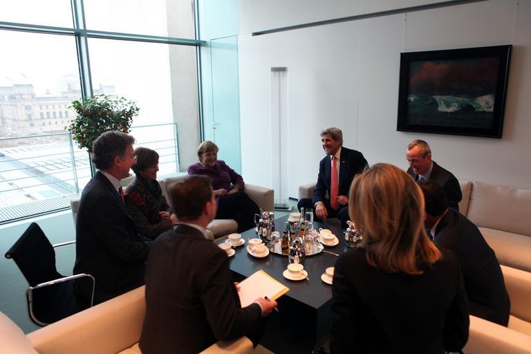 | Keywords: Secretary Kerry and German Chancellor Merkel Sit Down for Coffee.jpg en U S Secretary of State John Kerry and German Chancellor Angela Merkel sit down for coffee in the Chancellor's office with the Reichstag in the background in Berlin Germany February 26 2013 State Department photo/ Public Domain 2013-02-27 07 24 44 http //www flickr com/photos/statephotos/8510489561/sizes/o/in/photostream/ U S Department of State U S Department of State http //flickr com/photos/9364837 N06/8510489561 2013-02-27 02 50 06 United States Government Work PD-USGov Uploaded with UploadWizard John Kerry and Angela Merkel 20130227072444 Angela Merkel in 2013 20130227072444 John Kerry in 2013 Interior of Bundeskanzleramt Berlin 20130227 Reichstag building from west 20130227 ImageNote 1 371 262 65 72 1024 683 2 Angela Merkel ImageNoteEnd 1 ImageNote 2 611 237 65 82 1024 683 2 John Kerry ImageNoteEnd 2 |