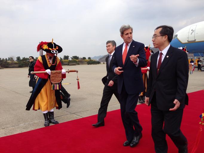 Keywords: Secretary Kerry is Escorted by Moon Seoung-hyun.jpg en U S Secretary of State John Kerry is escorted by Moon Seoung-hyun Deputy Director General of the Ministry of Foreign Affairs for North America and accompanied by U S Ambassador to South Korea Sung Kim upon his arrival in Seoul South Korea on April 12 2013 State Department photo/ Public Domain 2013-04-12 14 37 20 http //www flickr com/photos/statephotos/8641374349/sizes/o/in/photostream/ U S Department of State 37 449166666667 127 1085 U S Department of State http //flickr com/photos/9364837 N06/8641374349 2013-04-12 12 50 30 United States Government Work PD-USGov Uploaded with UploadWizard John Kerry in 2013 Sung Kim |