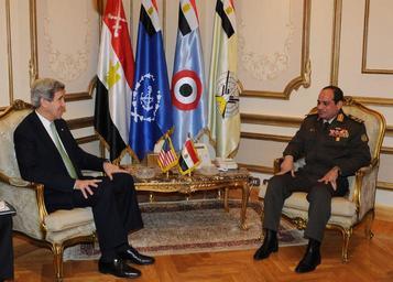 Keywords: Secretary Kerry Meets With Egyptian Defense Minister al-Sisi.jpg en U S Secretary of State John Kerry meets with Egyptian Defense Minister Abdul Fatah Khalil al-Sisi in Cairo Egypt on March 3 2013 State Department photo/ Public Domain 2013-03-03 13 07 09 http //www flickr com/photos/statephotos/8524742410/sizes/o/in/photostream/ U S Department of State U S Department of State http //flickr com/photos/9364837 N06/8524742410 2013-03-03 16 50 34 United States Government Work PD-USGov Uploaded with UploadWizard John Kerry in 2013 Abdel Fattah el-Sisi |