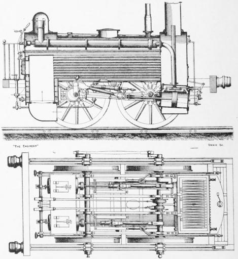 | Keywords: Section and plan of Stephenson 0-4-0 "Samson" type, 1831.png Cross section and underside plan view of one of Robert Stephenson's 0-4-0 Samson -type steam locomotives from 1831 designed for hauling goods trains The cross section shows the innards of the boiler firebox and smokebox as well as the steam piping and details of the running gear The underside plan view shows how the piston rods run underneath the front axle to the rear crank axle https //archive org/details/britishsteamrail00ahro The British Steam Railway Locomotive 1825 “1925 https //archive org/stream/britishsteamrail00ahro page/20/mode/1up p 20 fig 14 Image converted to grayscale for upload 1927 Ernest L Ahrons PD-US-no notice PD-old-auto-1996 1926 GB 0-4-0 locomotives |
