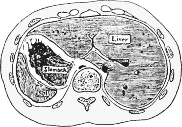Keywords: Section through epigastrium area subjected to greatest pressure.gif An Illustration from The Corset Published in New York Medical Journal November 5 1887 1887-11-05 Robert L Dickinson Copyright has expired due to the age of the publication PD-old Results of corset use |