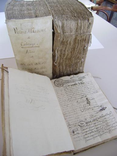 | Keywords: "Segundo Manual" del notari Narcís Font de Figueres.jpg ca Els protocols notarials del districte de Figueres datats fins al 1799 estan dipositats a l´Arxiu Històric de Girona i els compresos entre aquest any i l´últim any consultable és a dir els que tenen més d´un segle d´antiguitat són a l´ACAE en el qual s´ingressen cada any en virtut de la resolució del Col·legi de Notaris de Barcelona de 2 de març de 1995 La partició es va fer al mes de juliol del 1938 en què el notari de Figueres Evarist Vallès va fer lliurament de tota la documentació notarial anterior al 1800 per tal que fos traslladada a l´arxiu-refugi de Viladrau per raons de seguretat Aquests protocols més endavant serien els que passarien a Girona en el moment de la posada en funcionament del nou Archivo Provincial El catàleg del fons notarial de tot el districte de Figueres va ser publicat en dos volums per la Fundació Noguera de Barcelona dins de la Col·lecció d´Inventaris d´Arxius Notarials de Catalunya on apleguen la descripció pormenoritzada de més de vuit mil llibres Els protocols de l´ACAE sumen 1643 llibres 2008 Dades tècniques Títol Segundo Manual del notari Narcís Font de Figueres Data 1808 Suport material paper amb cobertes de cartró folrat de pergamí Mides 225 x 320 mm 2008-09-29 12 28 57 http //xac gencat cat/ca/llista_arxius_comarcals/alt_emporda/els_documents_escollits/ Arxiu Comarcal de l'Alt Empordà other versions PD-old-70-1923 Arxiu Comarcal de l'Alt Empordà Uploaded with UploadWizard Taken with Olympus FE-290 / X-825 |