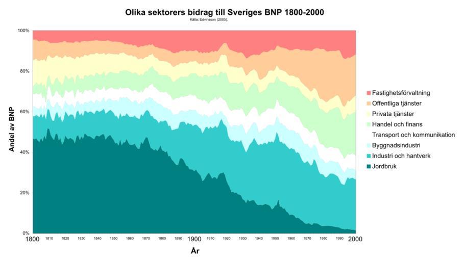 Keywords: Sektorers bidrag till Sveriges BNP 1800-2000.svg en Relative contribution of economic sectors to Swedens GDP 1800-2000 sv Olika sektorers bidrag till Sveriges BNP 1800-2000 Own Koyos 2009-01-20 Data by Edvinsson 2005 Gross domestic product Economic history of Sweden Economic statistics for Sweden |