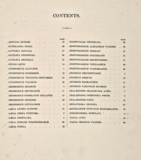 Keywords: Select Orchidaceous Plants - Second series - index.jpg Index of Select orchidaceous plants second series <br> http //www botanicus org/page/269392 1865-1875 Walter Hood Fitch 1817 - 1892 illustrator <br> Robert Warner 1814-1896 and Benjamin Samuel Williams 1822-1890 editors <br> PD-Old Robert Warner - Select Orchidaceous Plants