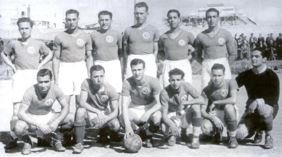 | Keywords: Sélection tunisienne.jpg fr Photo de la sélection tunisienne de football en 1939<br>Debout de gauche à droite Kacem EST Abdessalem CA Azopardi ESO Ferryville Mehl Racing Club Bransi EST Canino Italia <br>Accroupis de gauche à droite Hédi Ben Ammar CA Salah Akacha CA Ducousseau USB Rachid Sehili ESS Ben Cheikh CAB André Tuil UST Archive author 1939 PD-Tunisia Tunisia national football team | ||||