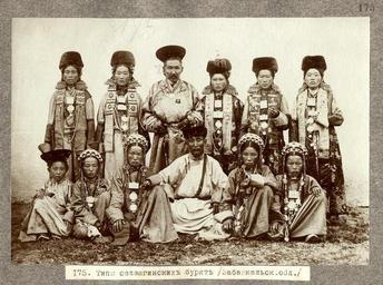 Keywords: Selenginskie buryaty.jpg ru Селенгинские бу яты Selenga Buryats Novosibirsk State Museum of Regional History and Folk Life Novosibirsk Russia http //hdl loc gov/loc ndlpcoop/mtfxph eet0005 Veniukov L unknown century 19 PD-old Group photographs History of Buryatia Buryat people Fur caps Male fur headgear Group portraits with 12 persons Buryat costumes |