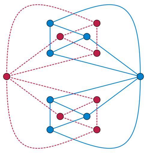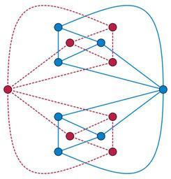 Keywords: Self-dual graph.svg self-dual graph that is 3-edge-connected but not 3-vertex-connected 2015-08-15 own David Eppstein other versions cc-zero Uploaded with UploadWizard Planar graphs