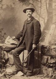 Keywords: portraits people monochrome surreal outdoor Photographer: Reuben R. Sallows (1855 - 1937) Description: Studio portrait of Reuben R. Sallows as a young man with a forest backdrop and a small stone wall with a gate. He is facing front, standing in front of gate holding a walking stick in left hand; rests hand on top of rock at left side; wearing flat straw hat, jacket buttoned at top, vest, pants and tie, collar of shirt visible; handlebar moustache; left foot rests on rock. Sallows Goderich imprint stamped in bottom left corner; writing in ink on back identifies subject 'Reuben R. Sallows'. Print enclosed in a white border. Object ID : 0388-rrs-ogohc-ph View additional photographs by Sallows that are held in other collections at the Reuben R. Sallows Digital Library. Order a higher-quality version of this item by contacting the Huron County Museum (fee applies). Photographer: Reuben R. Sallows (1855 - 1937) Description: Studio portrait of Reuben R. Sallows as a young man with a forest backdrop and a small stone wall with a gate. He is facing front, standing in front of gate holding a walking stick in left hand; rests hand on top of rock at left side; wearing flat straw hat, jacket buttoned at top, vest, pants and tie, collar of shirt visible; handlebar moustache; left foot rests on rock. Sallows Goderich imprint stamped in bottom left corner; writing in ink on back identifies subject 'Reuben R. Sallows'. Print enclosed in a white border. Object ID : 0388-rrs-ogohc-ph View additional photographs by Sallows that are held in other collections at the Reuben R. Sallows Digital Library. Order a higher-quality version of this item by contacting the Huron County Museum (fee applies). |