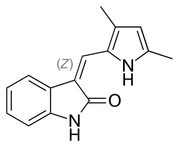 Keywords: Semaxanib.svg Skeletal formula of the investigational kinase inhibitor semaxanib semaxinib SU5416 Created using http //www acdlabs com/download/chemsk html ACD/ChemSketch 10 0 and Inkscape Own 2007-03-20 Fvasconcellos Image SU5416 png Indoles Protein kinase inhibitors Azoles Gamma-lactams |