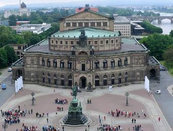 Keywords: Semperoper.von.Residenzschloss.jpg de Semperoper mit Theaterplatz vom Turm des Residenzschlosses aus gesehen own Membeth 2013-05-24 Cc-zero Exterior of the Semperoper Views from Hausmannsturm Dresden Taken with Canon Digital IXUS 30