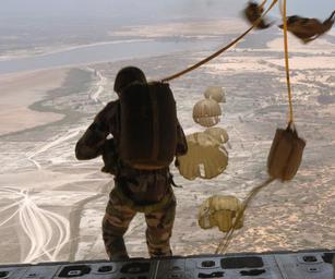 | Keywords: Senegal soldiers - parachute jump.jpg Dakar Senegal June 18 2005 - Senegal Army Soldiers static-line parachute jump from a U S Air Force MC-130 Talon over Dakar Senegal during Exercise Flintlock '05 Flintlock is a series of military exercises conducted throughout the Trans-Saharan region of Africa concentrating on ground air operations land navigation human rights training and collaboration between militaries Other countries participating in the exercise is Algeria Mali Mauritania and Chad U S http //www navy mil/view_image asp id 25434 2005-06-18 Journalist 1st Class Jeremy L Wood PD-USGov-Military-Navy Military people of Senegal Aerial photographs of Senegal Static line parachuting Paratroopers MC-130 Hercules Flintlock 2005 |