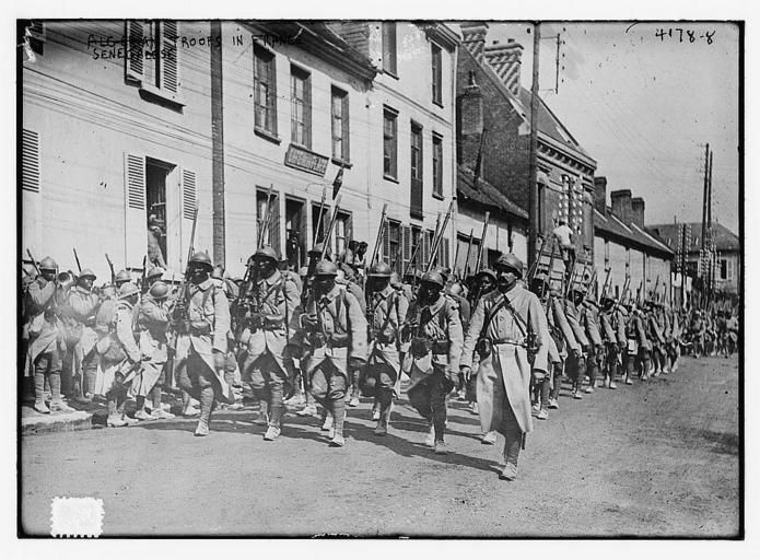 | Keywords: Senegalese troops in France (LOC) (17048928087).jpg Bain News Service publisher Senegalese troops in France between 1914 and 1918 1 negative glass ; 5 x 7 in or smaller Notes Title from data provided by the Bain News Service on the negative Photograph shows African Senegalese soldiers marching down a street in a town in France during World War I Forms part of George Grantham Bain Collection Library of Congress Subjects World War 1914-1918 Format Glass negatives Rights Info No known restrictions on publication Repository Library of Congress Prints and Photographs Division Washington D C 20540 USA http //hdl loc gov/loc pnp/pp print hdl loc gov/loc pnp/pp print General information about the Bain Collection is available at http //hdl loc gov/loc pnp/pp ggbain hdl loc gov/loc pnp/pp ggbain Higher resolution image is available Persistent URL http //hdl loc gov/loc pnp/ggbain 24160 hdl loc gov/loc pnp/ggbain 24160 Call Number LC-B2- 4178-8 https //www flickr com/photos/library_of_congress/17048928087/ Senegalese troops in France LOC LOC-image ggbain 24160 2011-01-01 00 00 https //www flickr com/people/8623220 N02 The Library of Congress http //www loc gov/rr/print/195_copr html noknown The Library of Congress Flickr Commons PD-Bain The Library of Congress https //flickr com/photos/8623220 N02/17048928087 2016-09-08 08 13 02 pd Uncategorized 2016 December 8 |