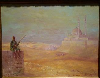 Keywords: Sentinel at Entrance of Cairo by Louis Comfort Tiffany, 1872, oil on canvas - New Britain Museum of American Art - DSC09642.JPG en Exhibit in the New Britain Museum of American Art New Britain Connecticut USA This artwork is in the public domain because the artist died more than 70 years ago 2013-06-27 13 00 30 own Daderot PD-old-70-1923 cc-zero Paintings in the New Britain Museum of American Art Uploaded with UploadWizard Paintings by Louis Comfort Tiffany |